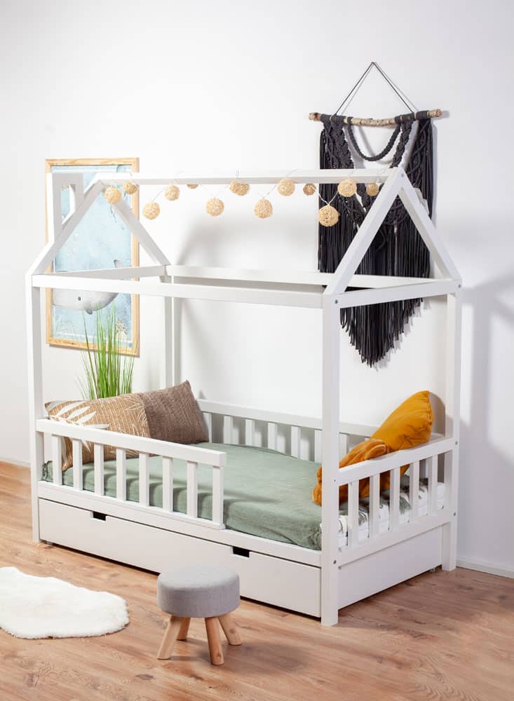 Łóżko-domek może być malowany ekologiczną farbą antyalergiczną.